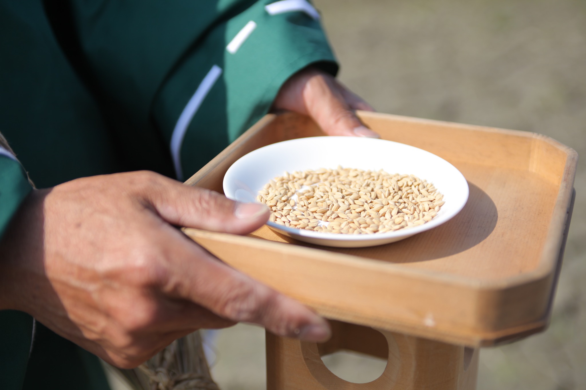 田植え祭りや抜穂祭り、新嘗祭といった神事を通じて育てられたお米が今回ご紹介する神饌米、「天香山(あまのかぐやま)」と「はにやす」です。