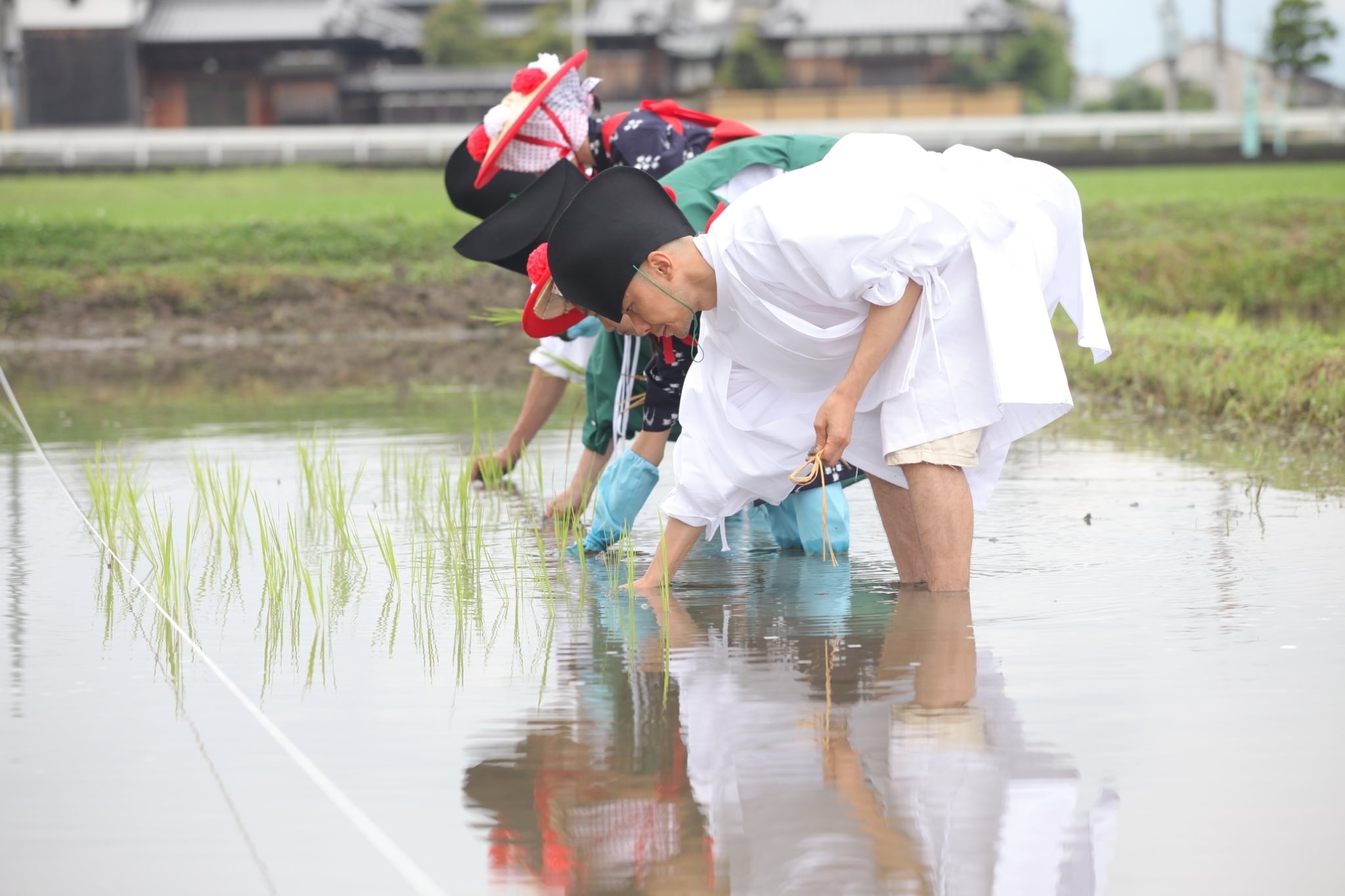 神饌とは、神前にお供えする酒食・供物のことです。平成から令和への御代替わりにあたり、天皇が大嘗祭において神に供えた酒食も神饌です。神饌の中心はお米であり、その稲は神饌田(斎田)という特別な田んぼで育てられます。春のお田植え祭 をはじめ、秋の 抜穂神事や新嘗祭を通じて土の神様のご加護が込められています。